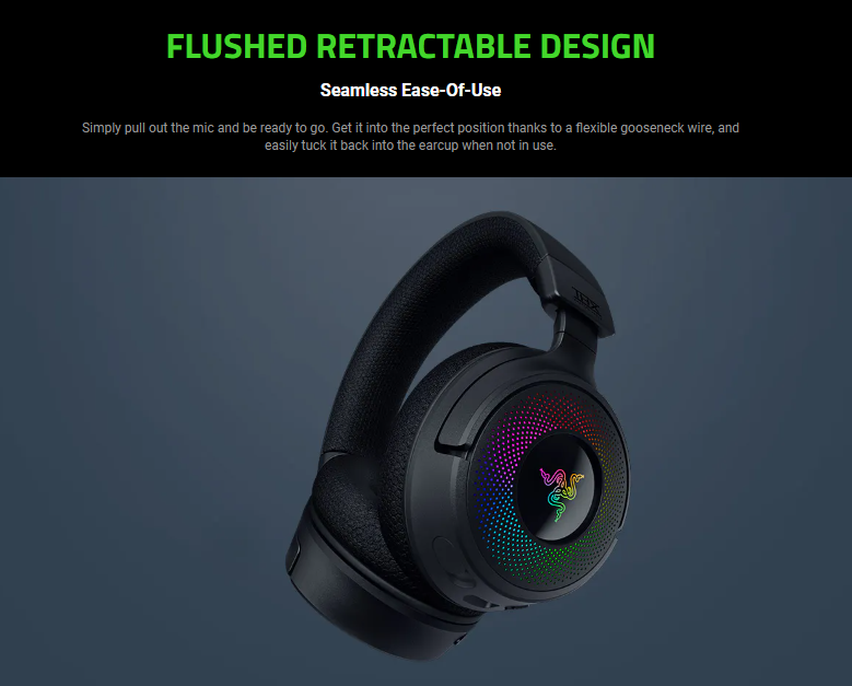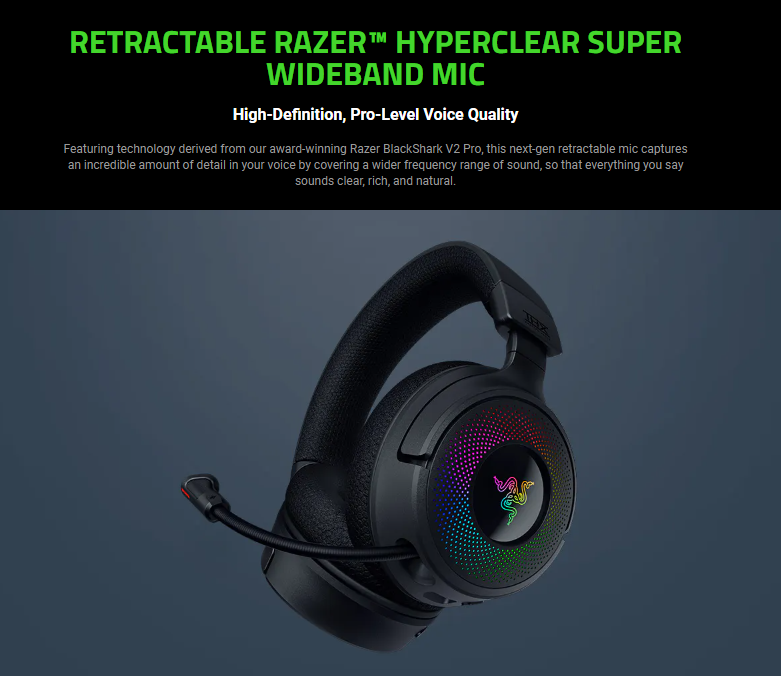 - Retractable Razer™ HyperClear Super Wideband Mic