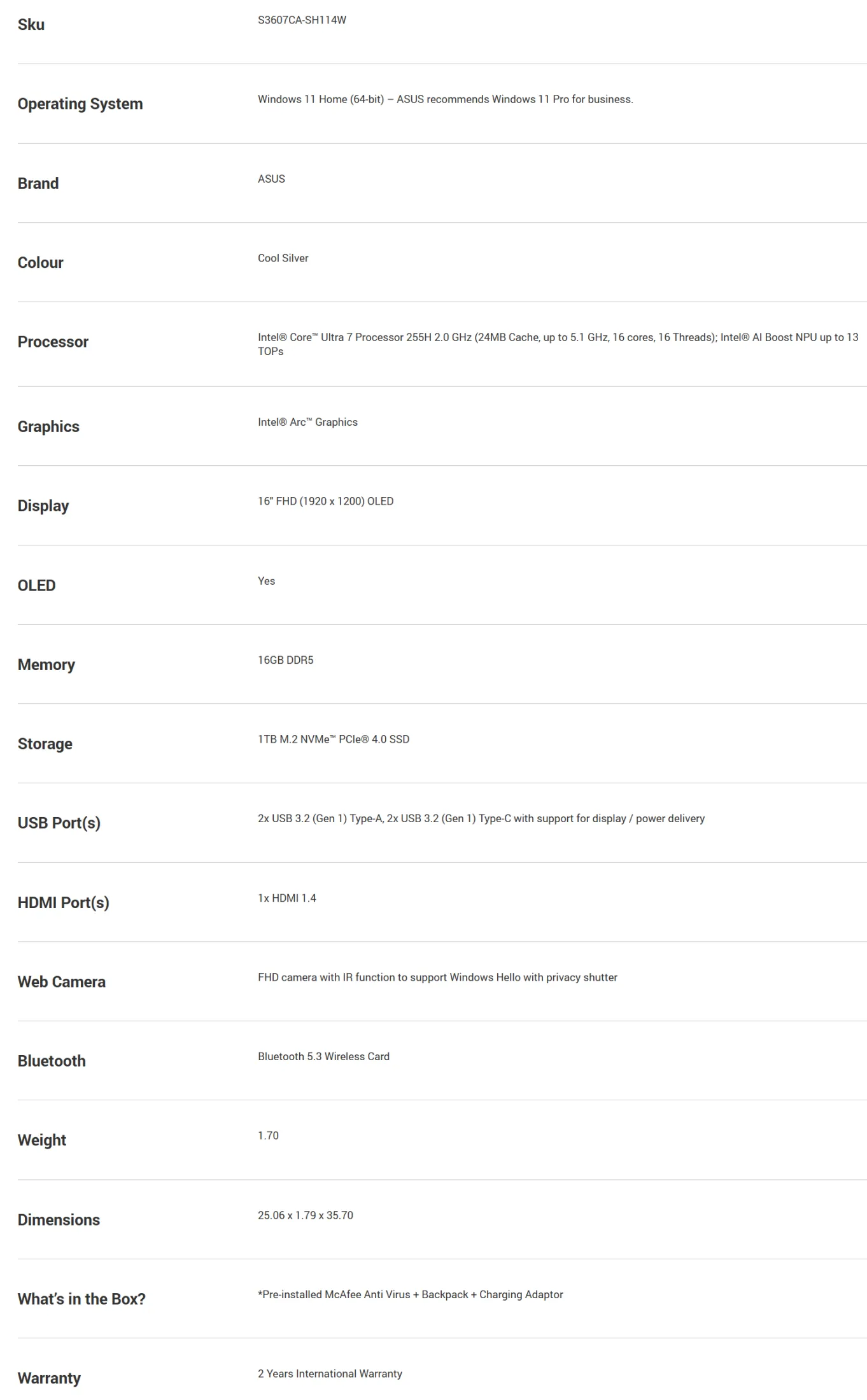 Intel® Core™ Ultra 7 Processor 255H 2.0 GHz (24MB Cache, up to 5.1 GHz, 16 cores, 16 Threads); Intel® AI Boost NPU up to 13 TOPs