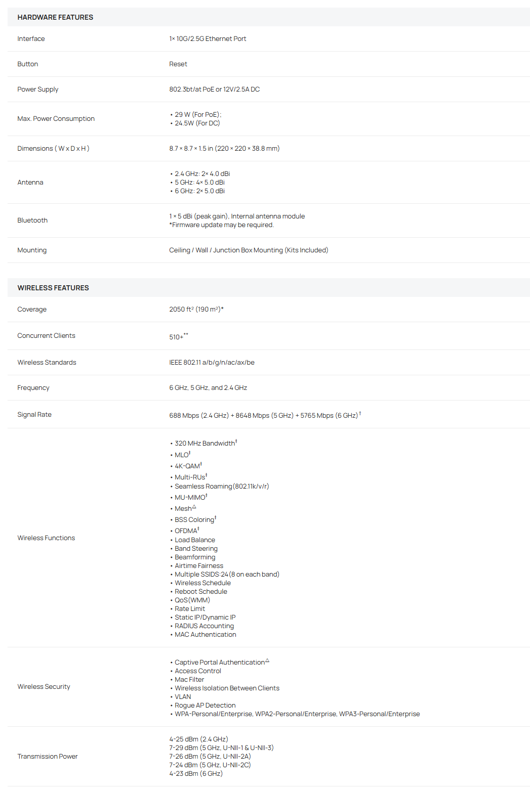 Advanced Features: Supports centralized management, Mesh, and Seamless Roaming.△