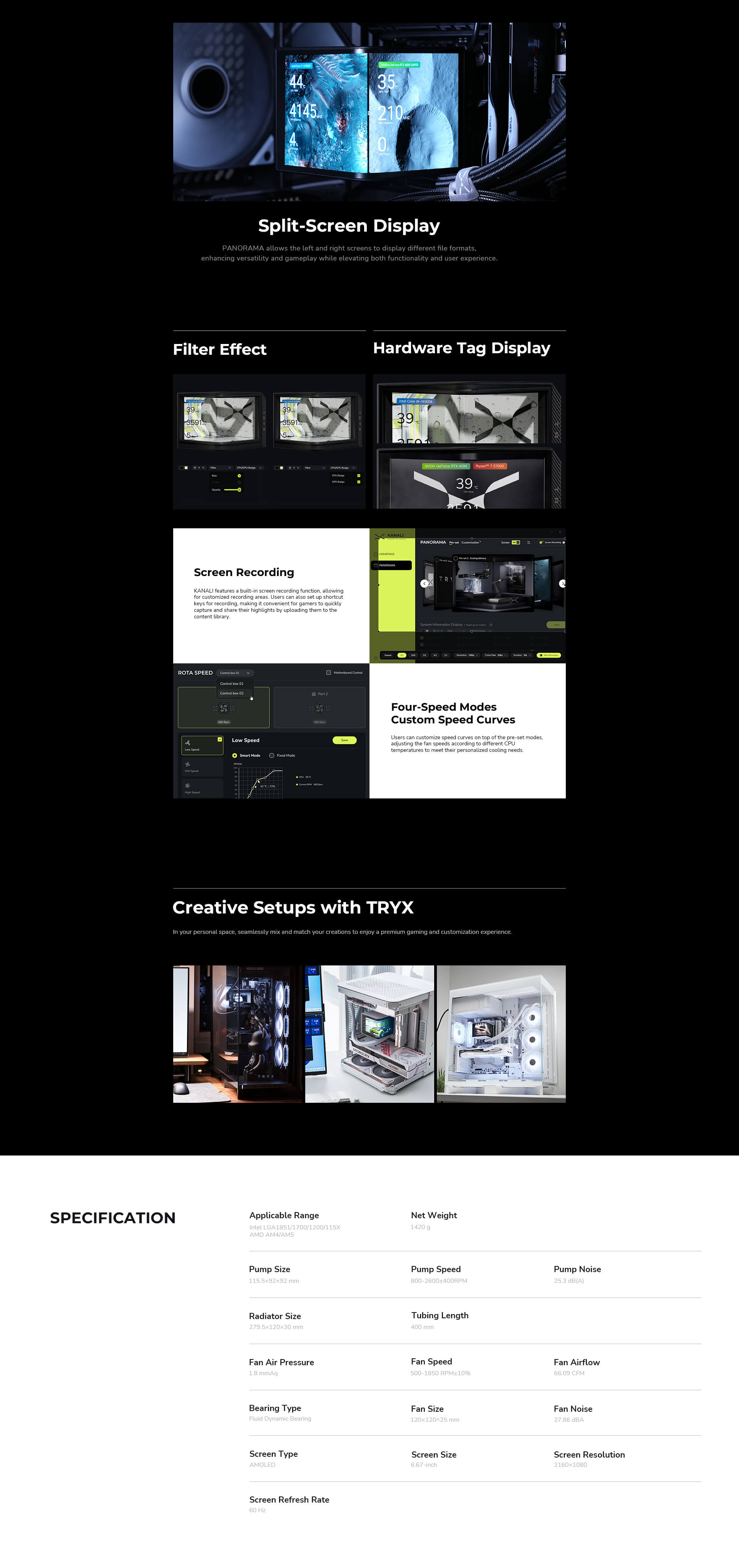 L-shaped AMOLED Screen Liquid Cooler