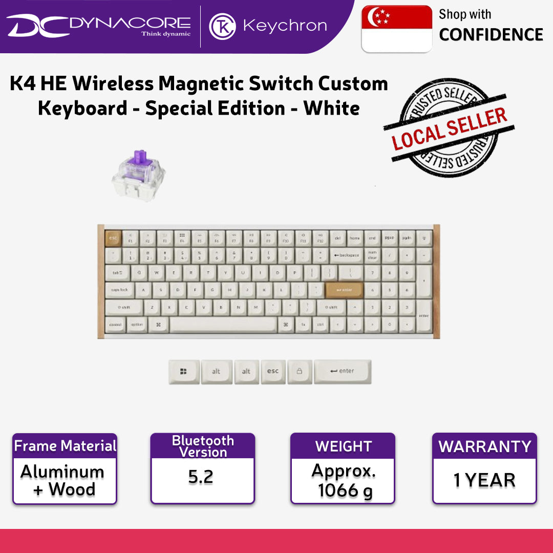 - Keychron K4 HE Wireless Magnetic Switch Custom Keyboard (Special Edition- White) - 4894979016706