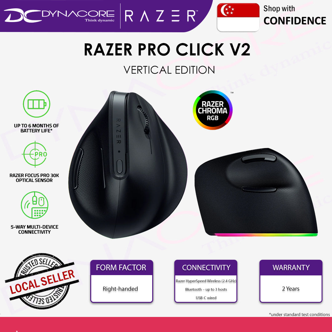 - RAZER Pro Click V2 Right-Handed Vertical Ergonomic Productivity Wireless Mouse - RZ01-05250100-R3A1 - 8886419334699