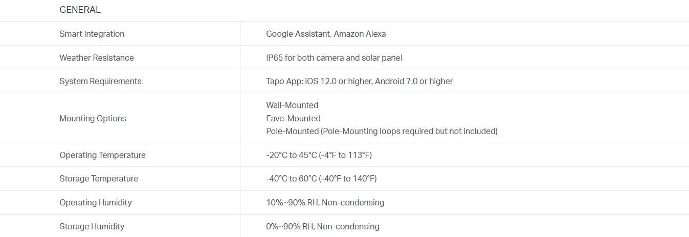 ◇180-day battery life is based on Tapo laboratory tests with 300 seconds of use per day. Increased usage per day reduces battery life. Actual battery life may vary due to device settings, usage, router specifications, and environmental factors.