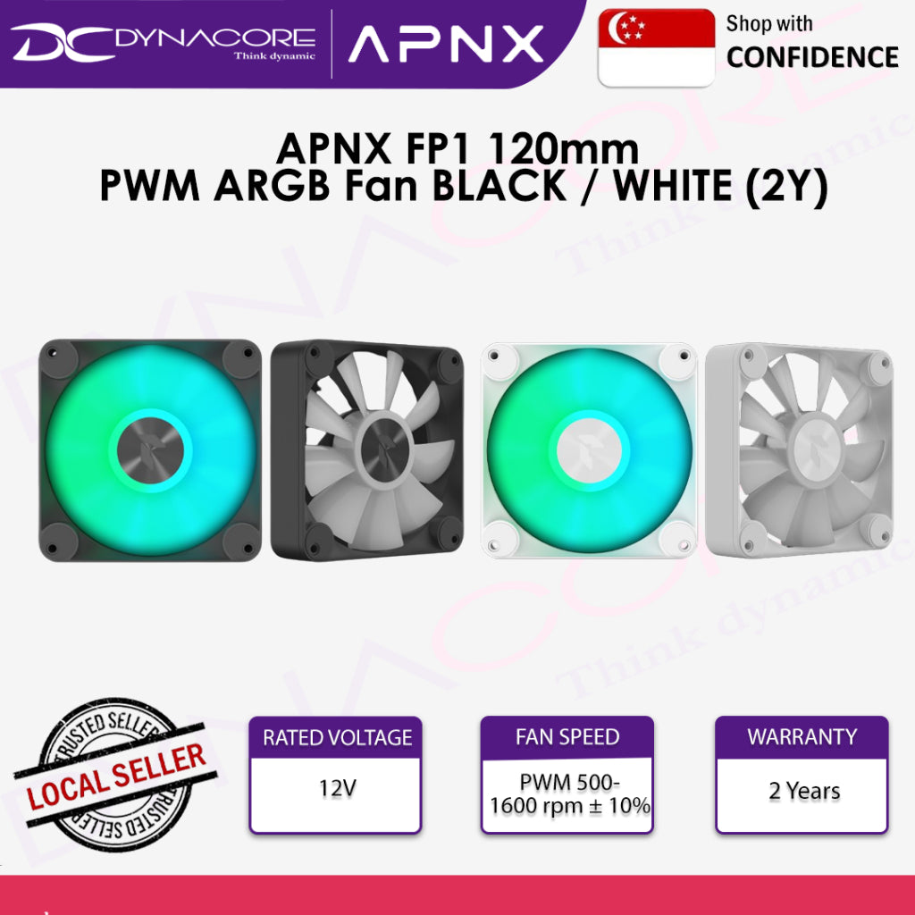 SPECS Model FP1-120 PWM ARGB | FP1-140 PWM ARGB Fan Dimensions (L x W x H) 120mm*120mm*30mm | 140mm*140mm*30mm Fan Speed PWM 500-1600 rpm ± 10% | PWM 500-1300 rpm ± 10% Fan Starting Voltage 5V Rated Voltage 12V Rated Current 0.4 A Power Consumption 4.8 W Connector Type PWM 4pin+ARGB 5V 3pin Air Pressure 2.26 mmH2O | 1.67 mmH2O Air Flow 74.6 CFM | 86.9 CFM Fan Noise Level 33.2 dBA | 32.9 dBA Bearing Type Hydraulic Bearing MTBF 60000 hrs