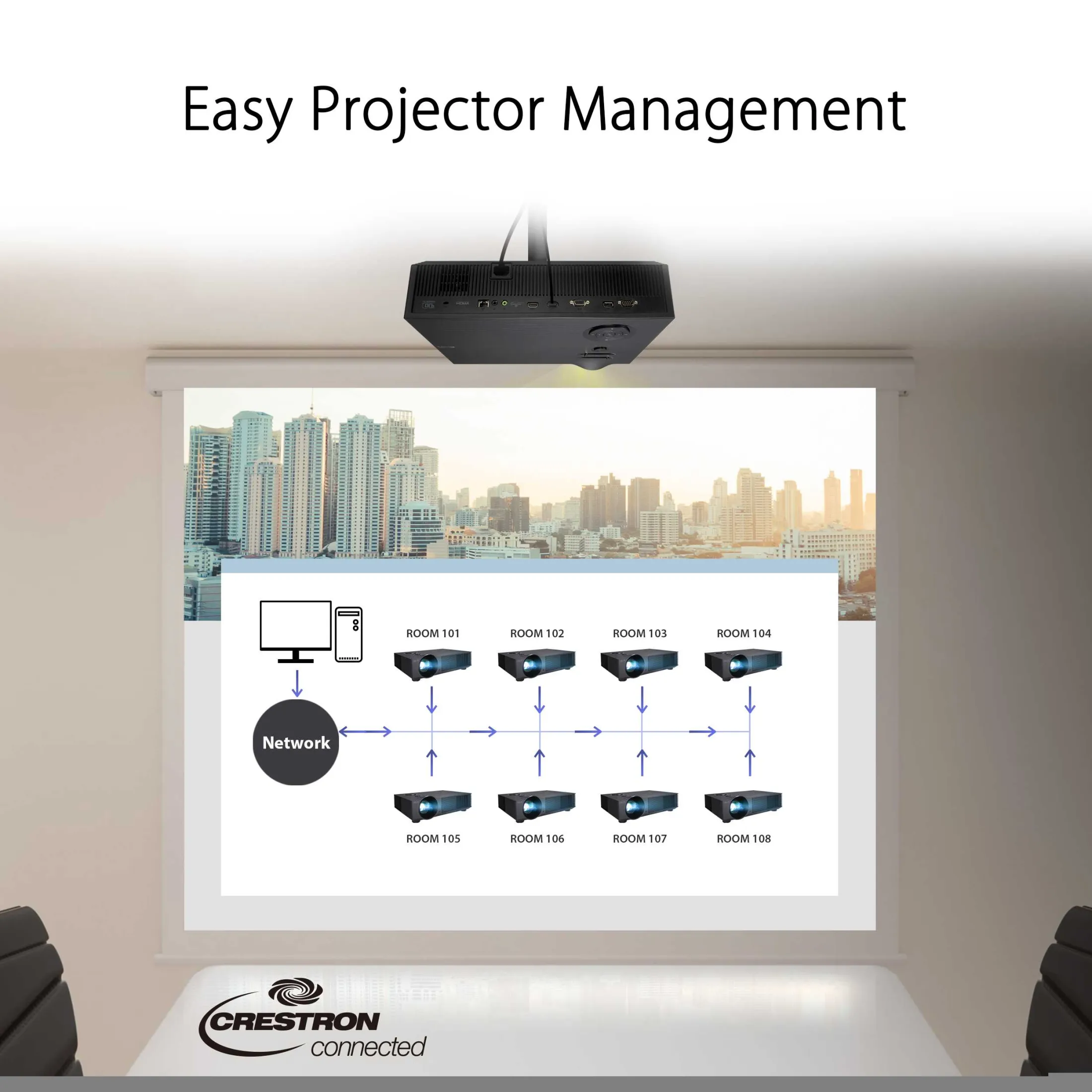 - Easy projector management - Integrated LAN port with Crestron RoomView® Express