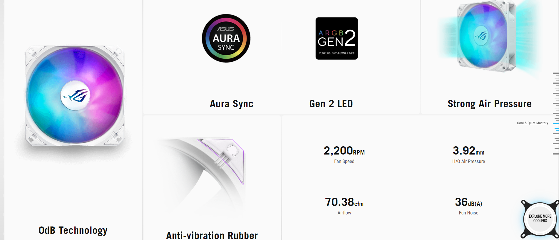 • Premium ROG ARGB fans with high airflow, optimized acoustics and 0dB technology
