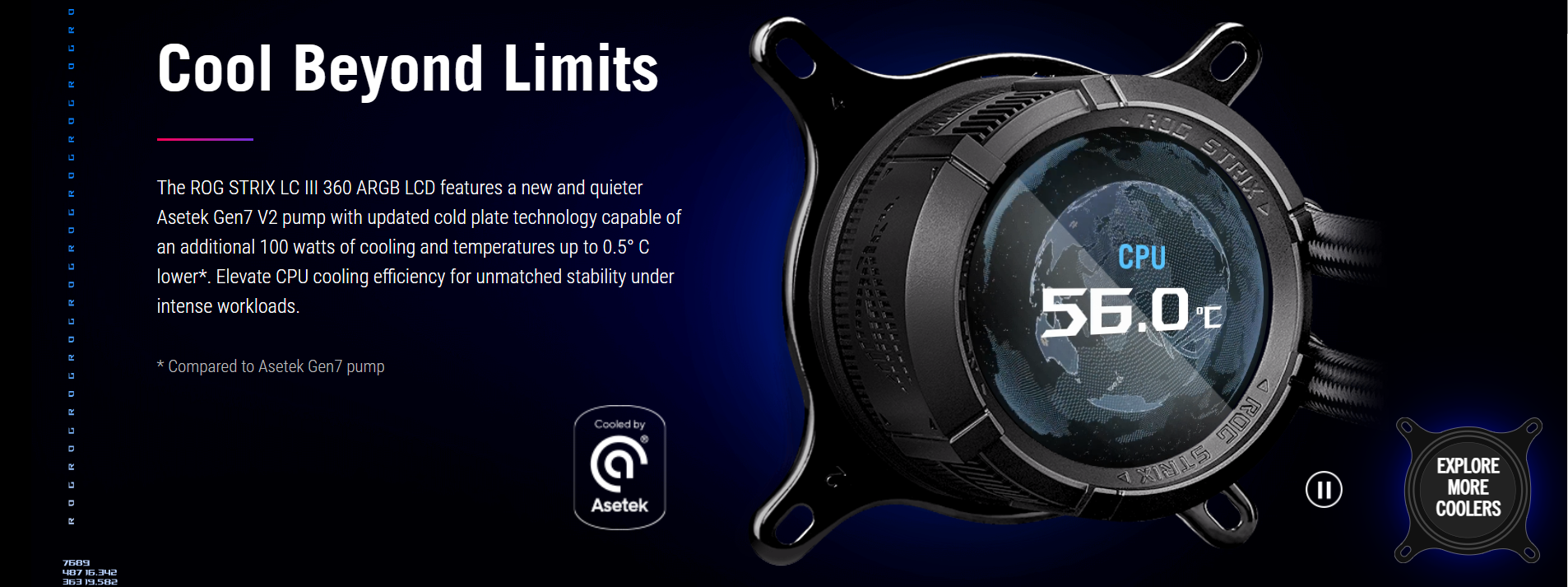 • New Asetek cold plate and gen7 V2 pump armed with a robust motor that delivers ultimate cooling performance