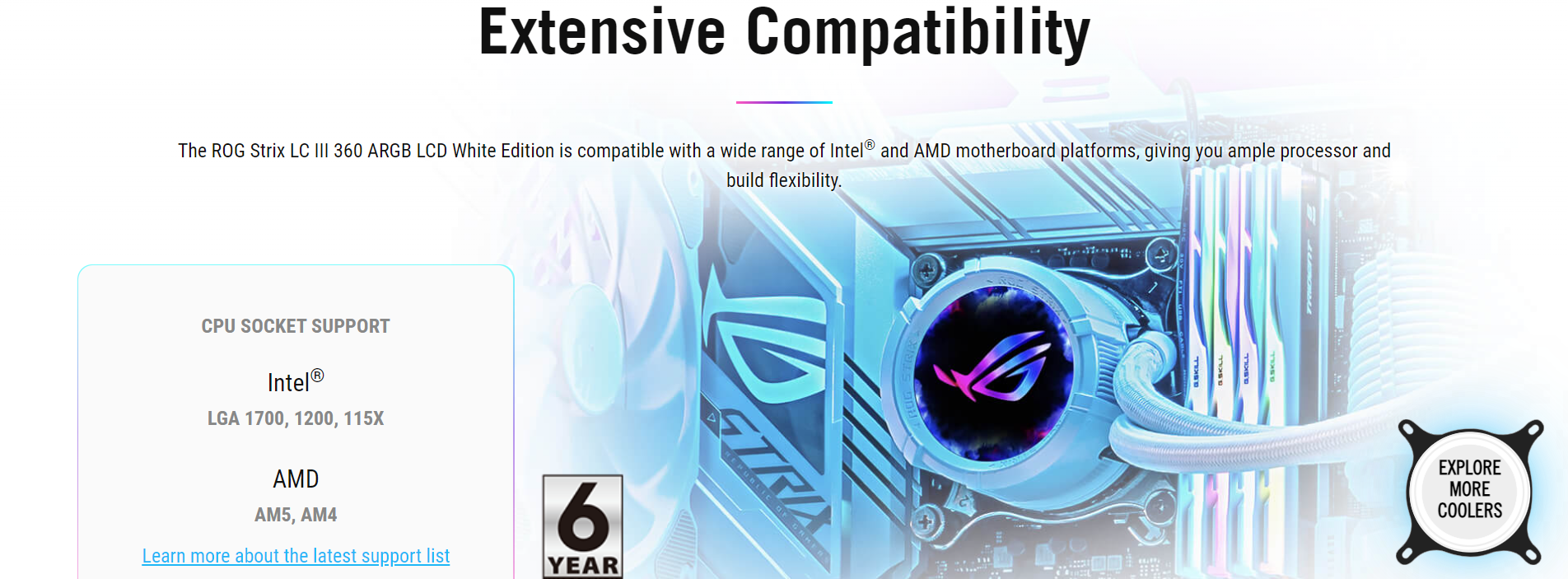 2.1" Full Color IPS LCD, Intel: LGA 1700, 1200, 115x , AMD: AM5, AM4 , 6 Yrs Wty