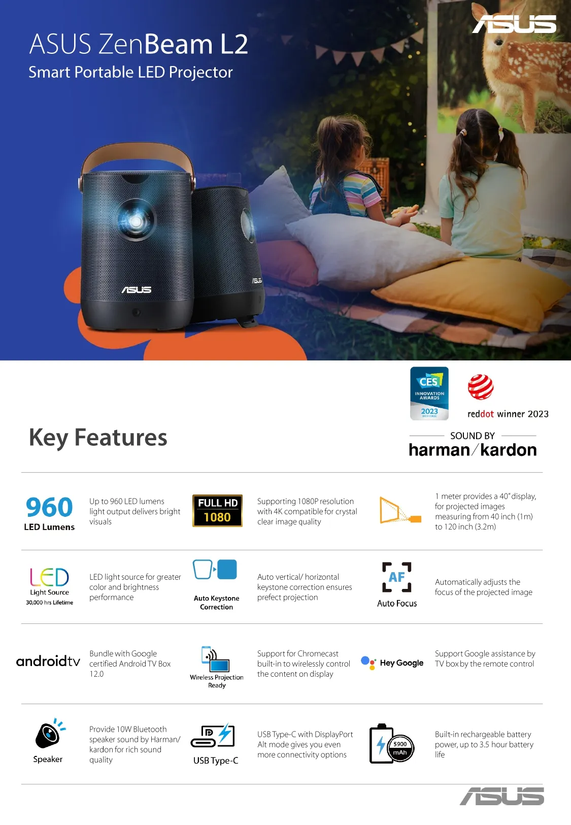 - 960 LED lumens output and Full HD native resolution, plus 4K compatibility