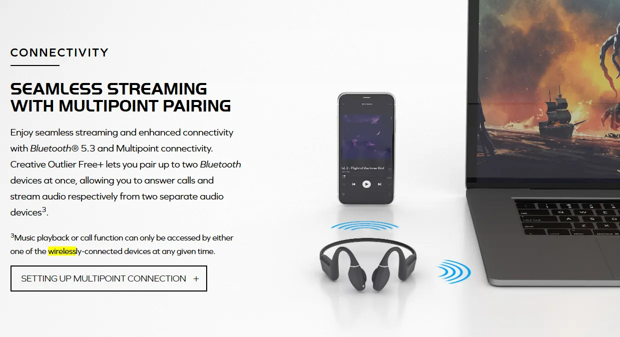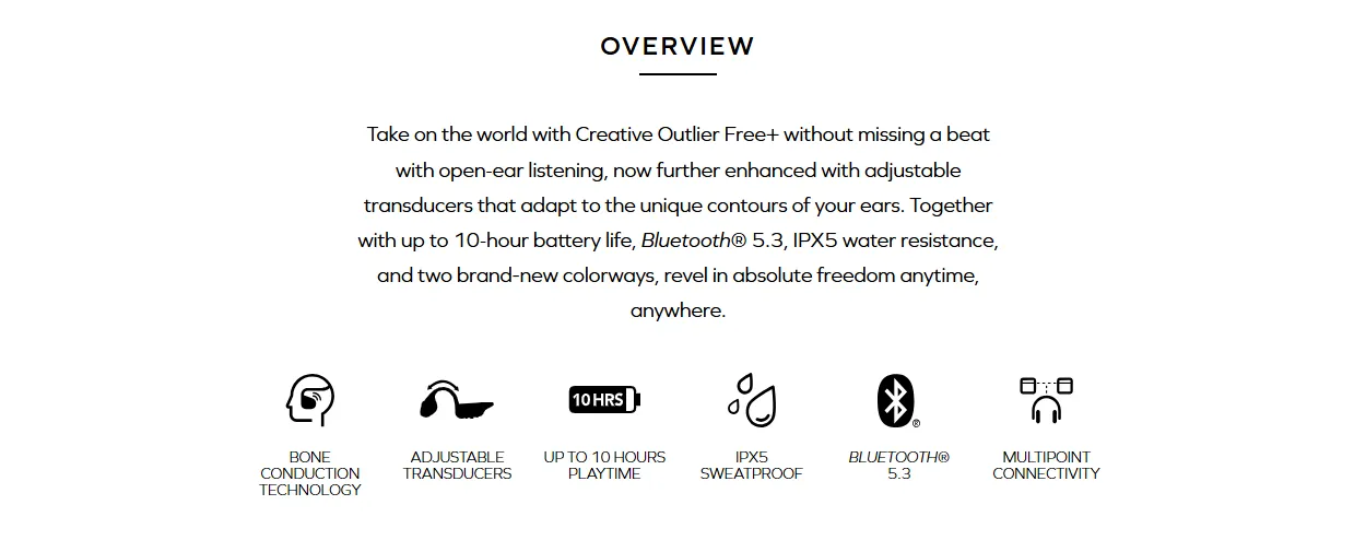 Creative Outlier Free+ Wireless Bone Conduction Headphones with Adjustable Transducers - 5390660195778 / 5390660195785