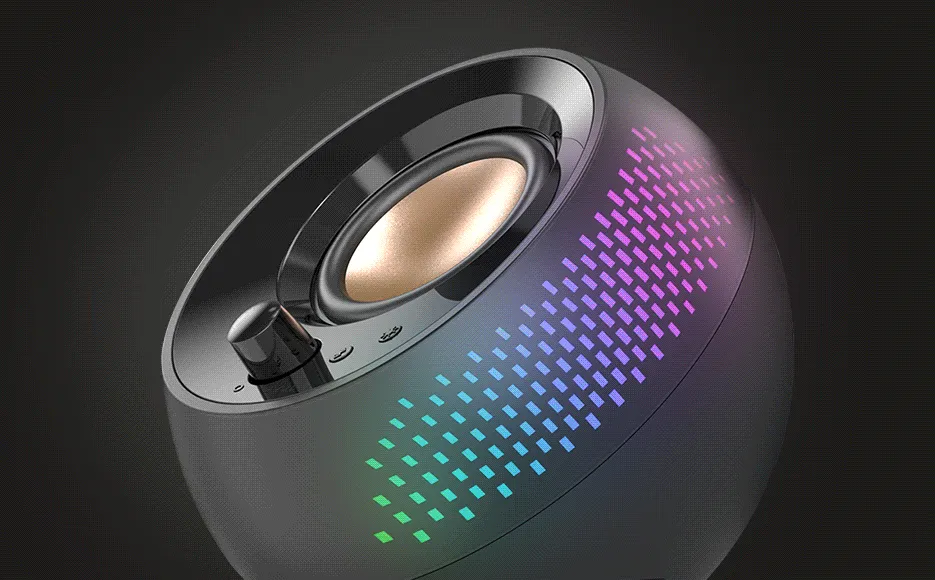 Embracing a minimalist black spherical design with a matte finish and customizable RGB lighting, the Creative Pebble X enhances any desk setup, elevating the overall visual appeal.