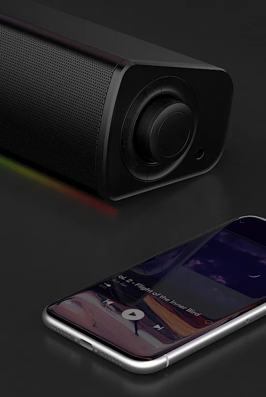 There are several ways you can connect the Sound Blaster GS3 to your PC*, gaming consoles, and mobile devices too. These options range from USB-C, AUX-in cable, to wireless Bluetooth 5.4! You can also enjoy high-quality sound without disturbing others when you connect with headphones directly to the soundbar via the headphone-out port.