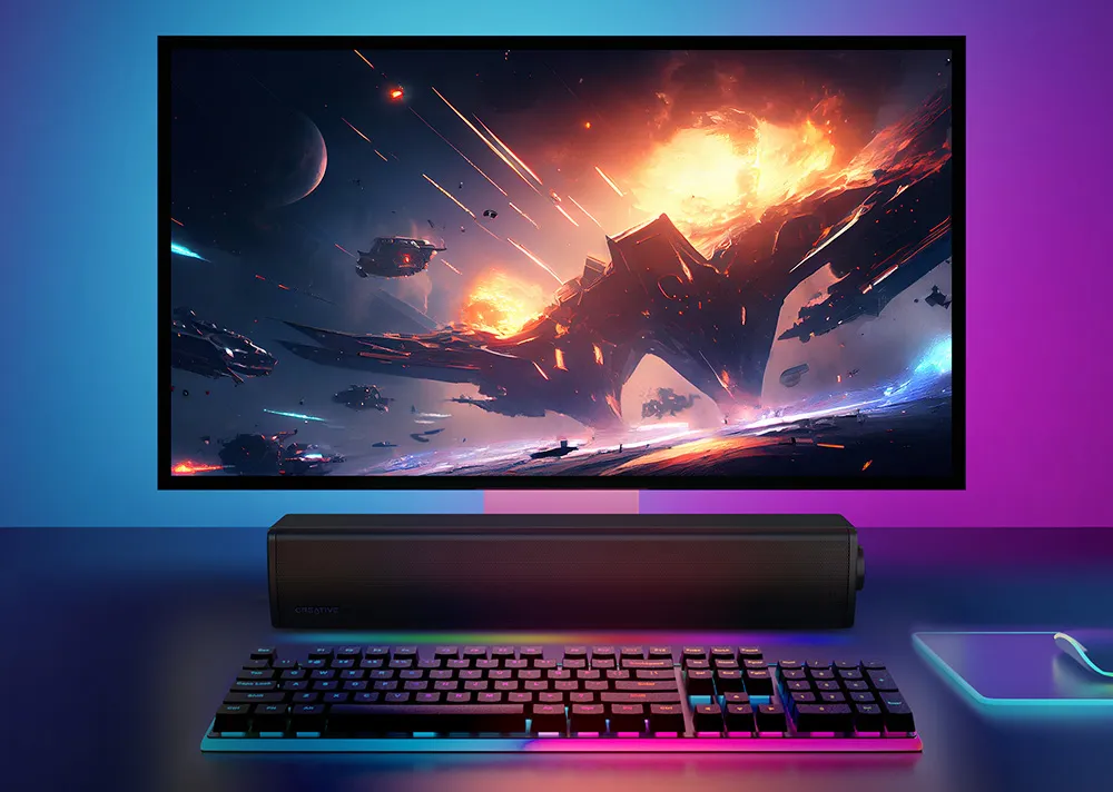 Decked out with powerful full-range racetrack drivers and built-in port tube at the rear of the soundbar, Sound Blaster GS3 deliver consistent audio and great bass! With a peak power of 24W and armed with SuperWide™ technology, the Sound Blaster GS3 stretches audio beyond the limits of conventional acoustic design laws, as it requires a huge amount of acoustic power that's not possible for a speaker of this size.
