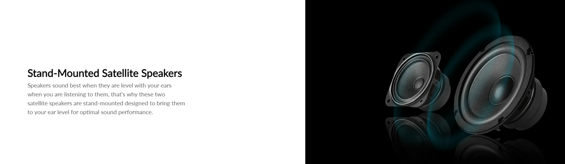Speakers sound best when they are level with your ears when you are listening to them, that's why these two satellite speakers are stand-mounted designed to bring them to your ear level for optimal sound performance.