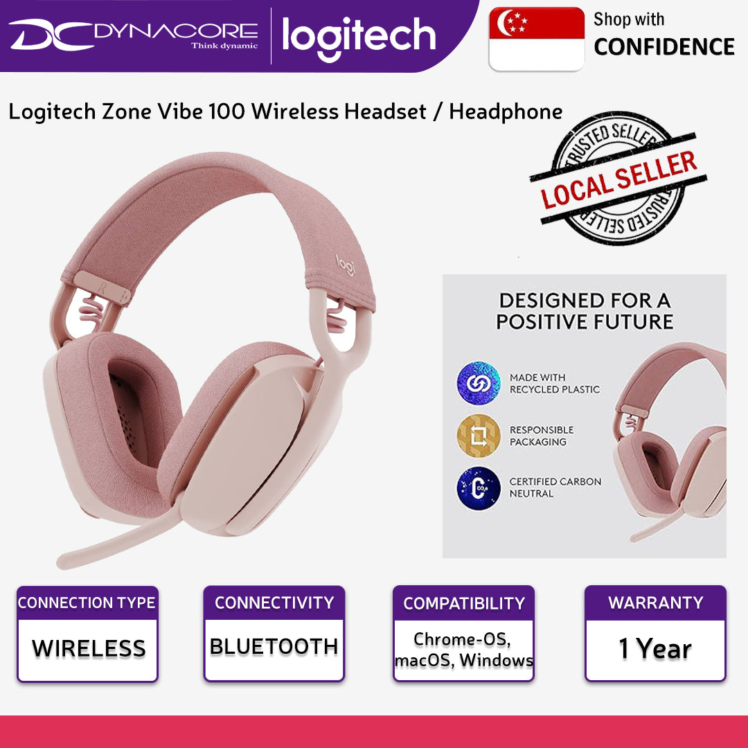 Logitech Zone Vibe 100 Wireless Headset / Headphone - Rose ( Replacement model for Logitech H600 / H800 ) -097855176554