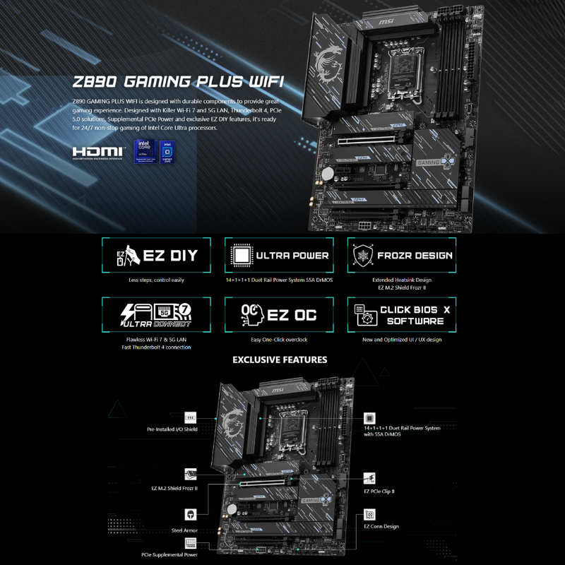 Ultra Connect: Thunderbolt™ 4 port, Intel® Killer™ 5G LAN & Intel® Killer™ Wi-Fi 7 Solution - the latest solution for professional and multimedia use, delivering secure, stable, and high-speed networking and data transmission