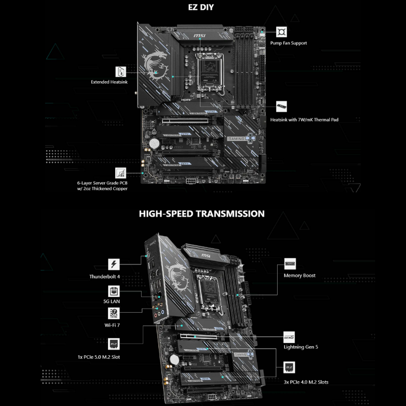Lightning Fast Game experience: PCIe 5.0 slot, Lightning Gen 5 x4 M.2