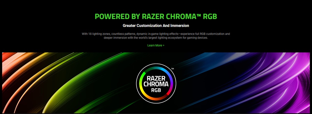 Powered by Razer Chroma: With 18 lighting zones, countless patterns, dynamic in-game lighting effects—experience full RGB customization and deeper immersion with the world’s largest lighting ecosystem for gaming devices