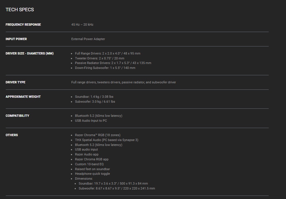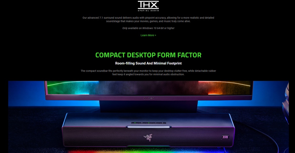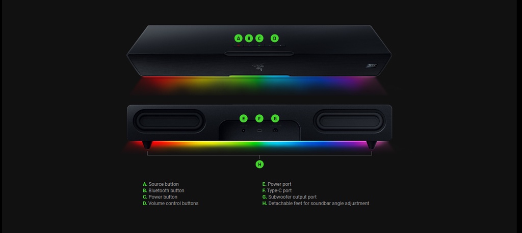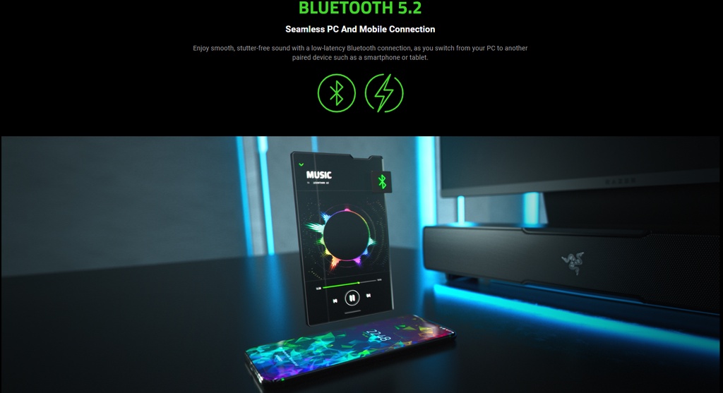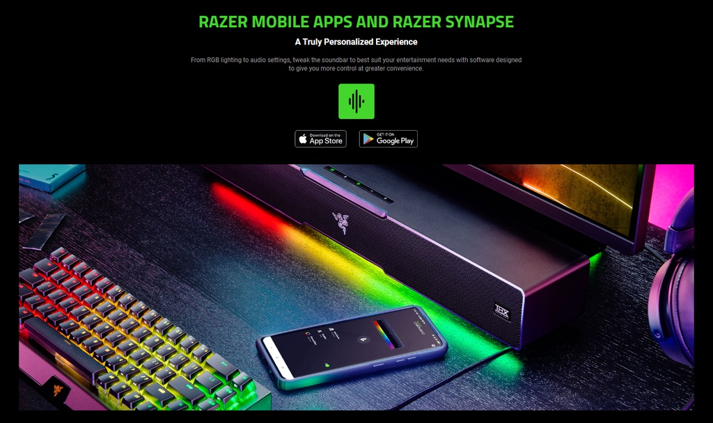 Razer Mobile Apps and Razer Synapse: From RGB lighting to audio settings, tweak the soundbar to best suit your entertainment needs with software designed to provide more control and greater convenience