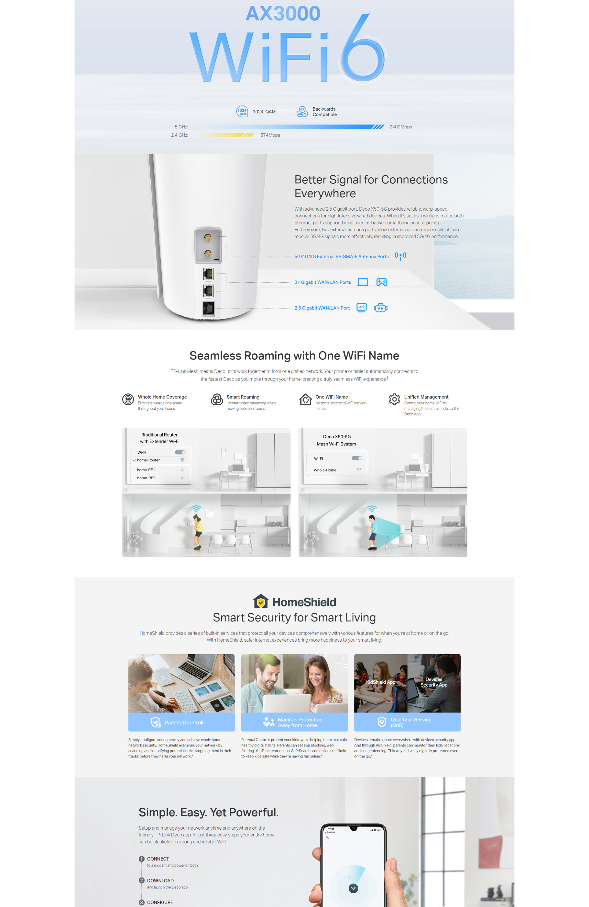 Mesh Network: Deco mesh technology ensures strong Wi-Fi signals everywhere‡