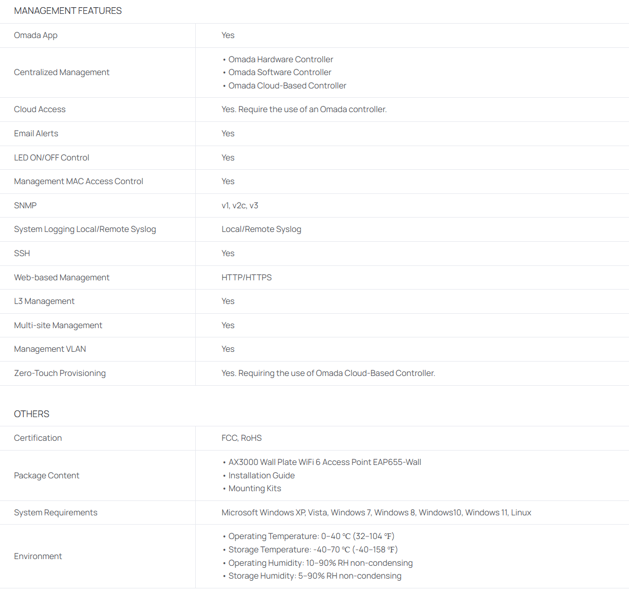 Centralized Cloud Management: Integrates into Omada SDN for cloud access and remote management.