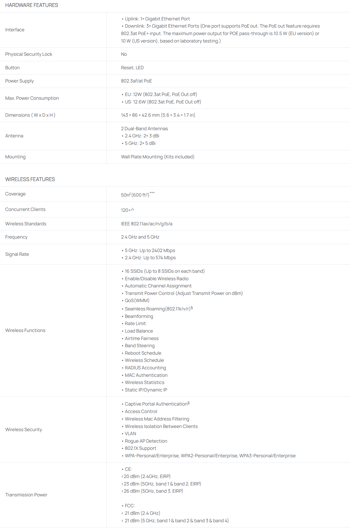 Blazing-Fast AX3000 WiFi 6 Speeds:: Simultaneous 574 Mbps on 2.4 GHz and 2402 Mbps on 5 GHz totals 2976 Mbps WiFi speeds.