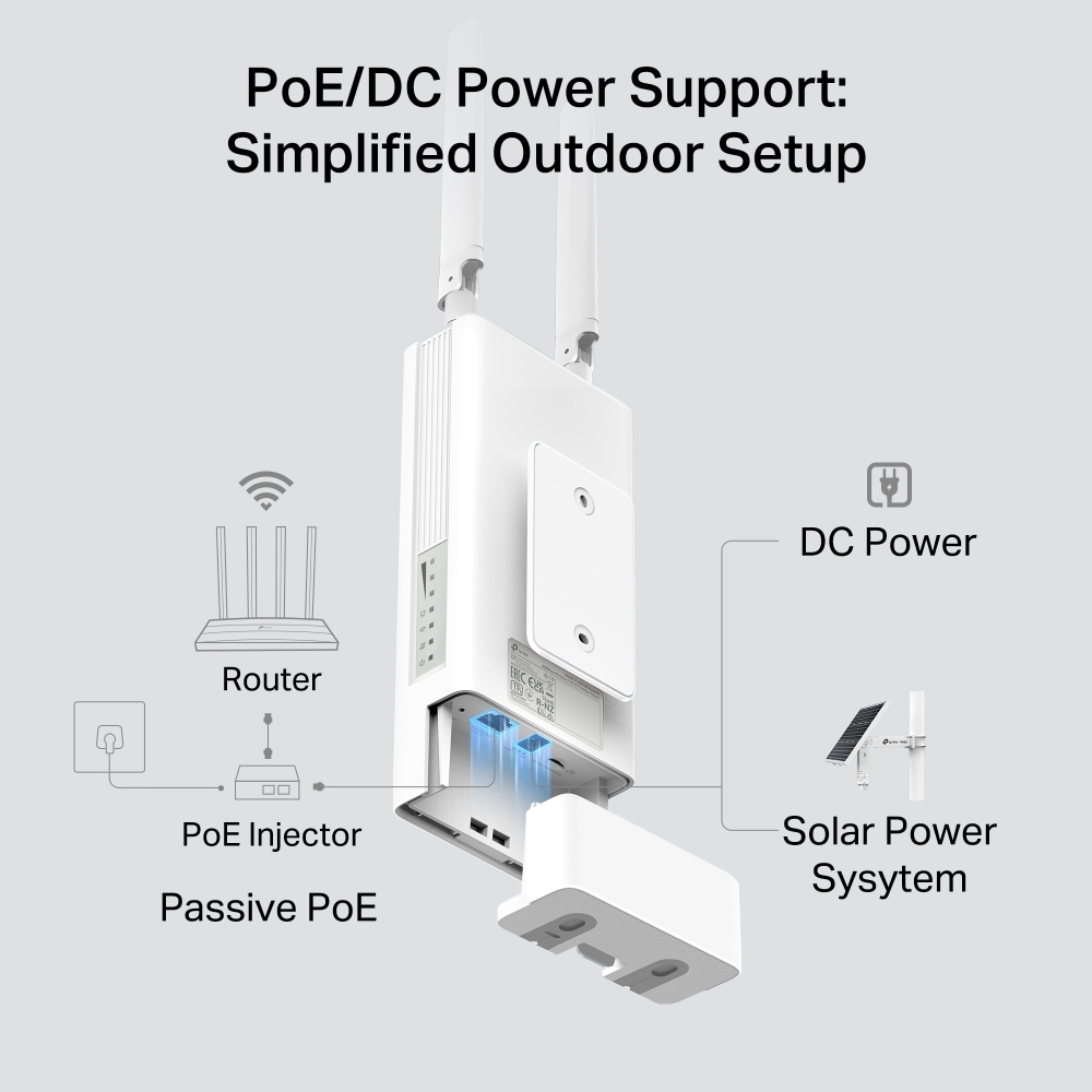 PoE/DC Power Supply: Supports 802.3af/802.3at PoE and passive PoE, enabling easy deployment.